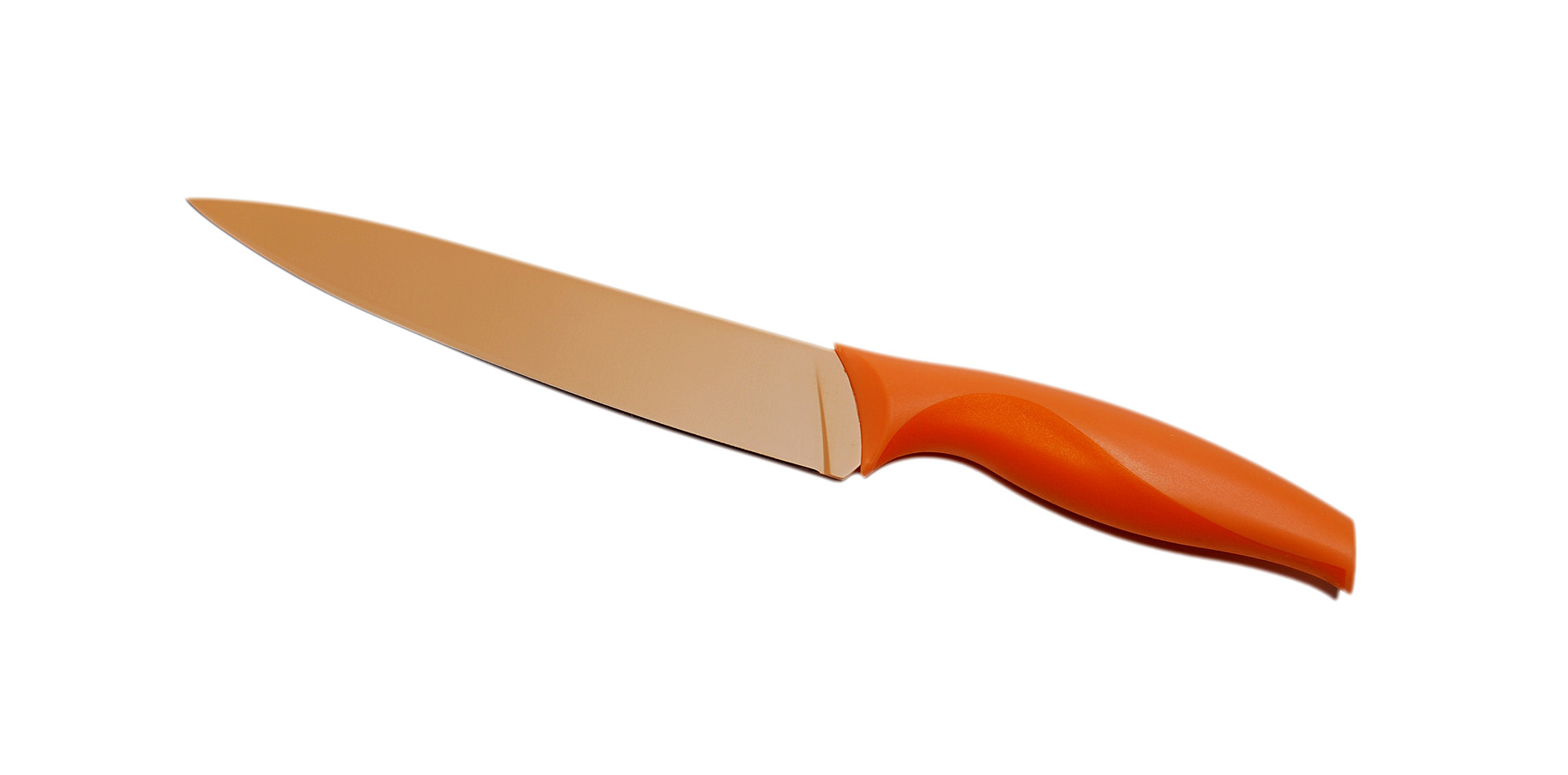 Нож оранжевый - 18 см. филейный. У этого ножа длинное и узкое лезвие, благодаря которому можно с легкостью одним движением нарезать очень тонкие и ровные