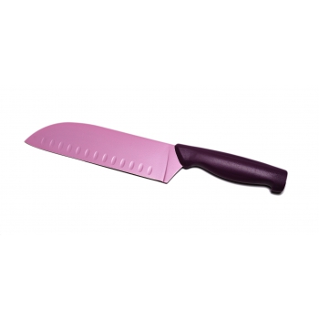 Нож сиреневый - 18 см - поварской нож. Нож имеет довольно широкое лезвие с закругленным обухом к прямой кромке. Центр его тяжести смещен к кончику, за