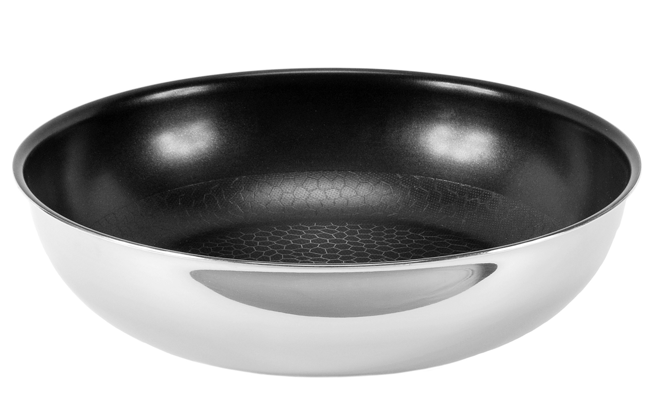 В дизайне сковороды используется рельефный орнамент.